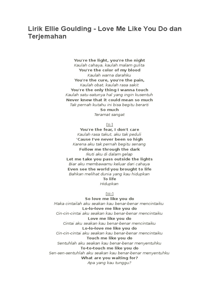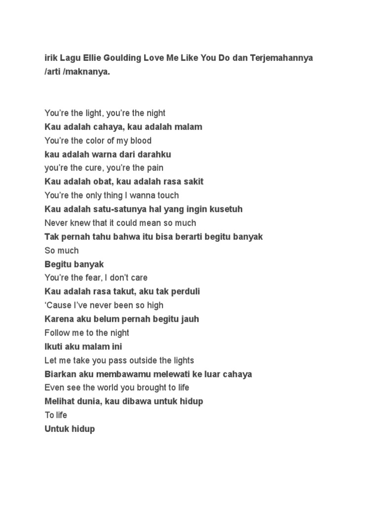 Irik Lagu Ellie Goulding Love Me Like You Do Dan Terjemahannya Pdf Rekreasi